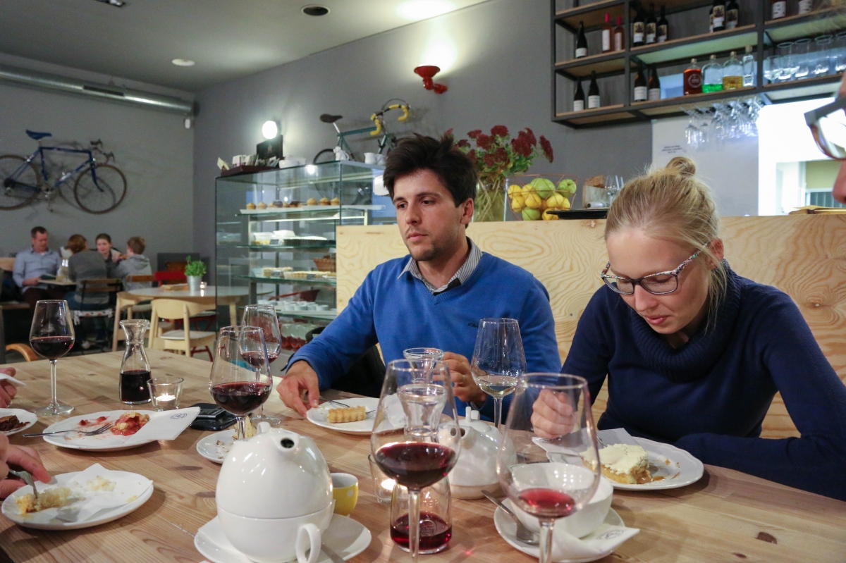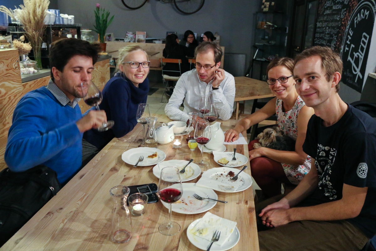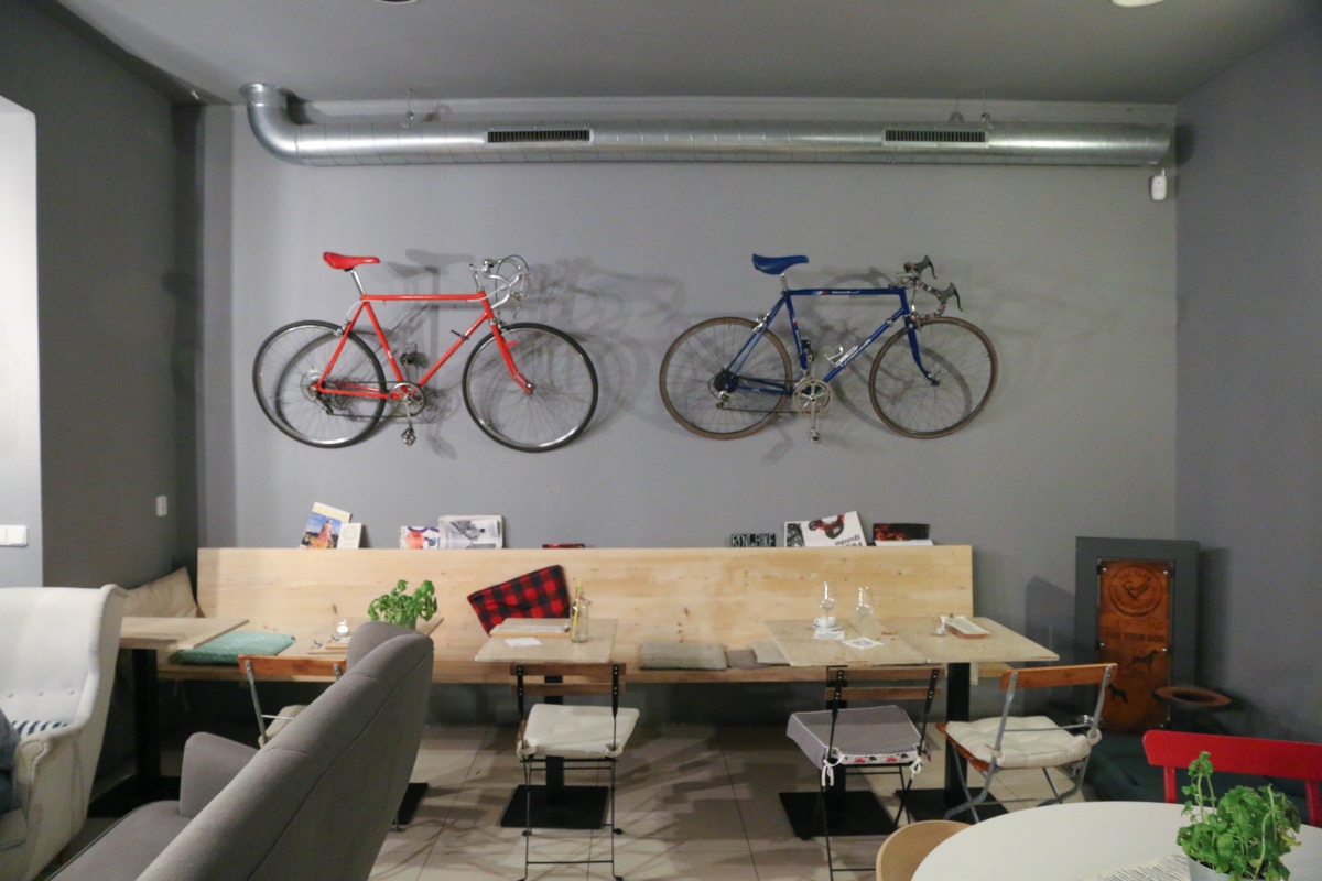 The Farm aka Farmu Letná jsme si pro sebe pojmenovali jako “generický hispter podnik berlínského střihu”, který geniálně zapadá do letenského ekosystému. Co taková místa (a nejen ta letenská) podle našeho názoru spojuje? Většinou sázejí na jednoduchý design skandinávského střihu, roztodivné artefakty (například kola na zdi), masivní dřevěné stoly či lavice (často také z palet), betonové či jednobarevně natřené zdi a dobrou kávu s příběhem (vytuněnou českými pražírnami do mírně kyselé chuti). Farmu Letná jsme objevili díky kolegyni Alex, která je věrnou fanynkou Cukroušů (Sue tímto zdravíme!) a doporučila nám ji pro návštěvu hlavně kvůli dortíku banana toffee (banoffee).